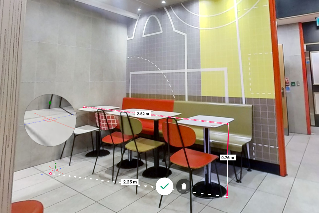 Your teams and/or contractors can measure anything from within the digital twin (eg length of a sofa or floor to ceiling height etc)